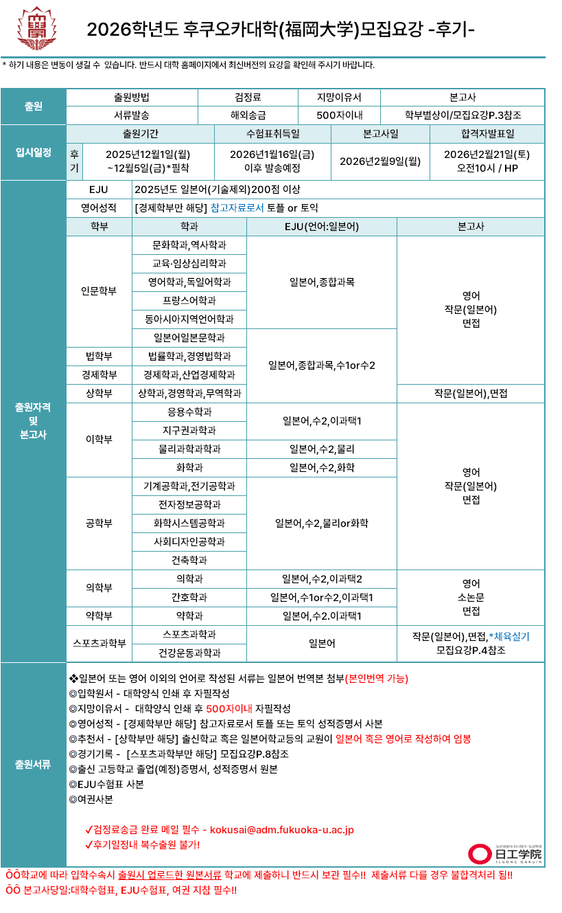 [사립] 2026학년도 후쿠오카대학 모집요강