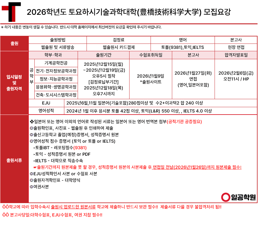 [국립] 2026학년도 토요하시기술과학대학 모집요강