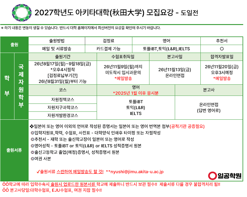 [국립] 2027학년도 아키타대학_국제자원학부_도일전