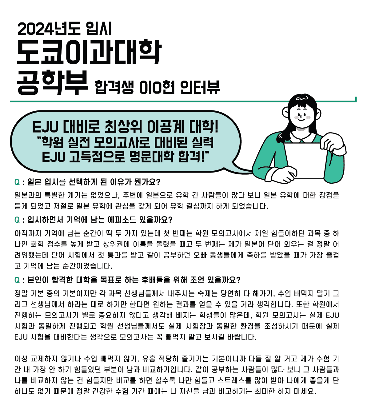 EJU고득점으로 최상위 이공계 명문대학 합격