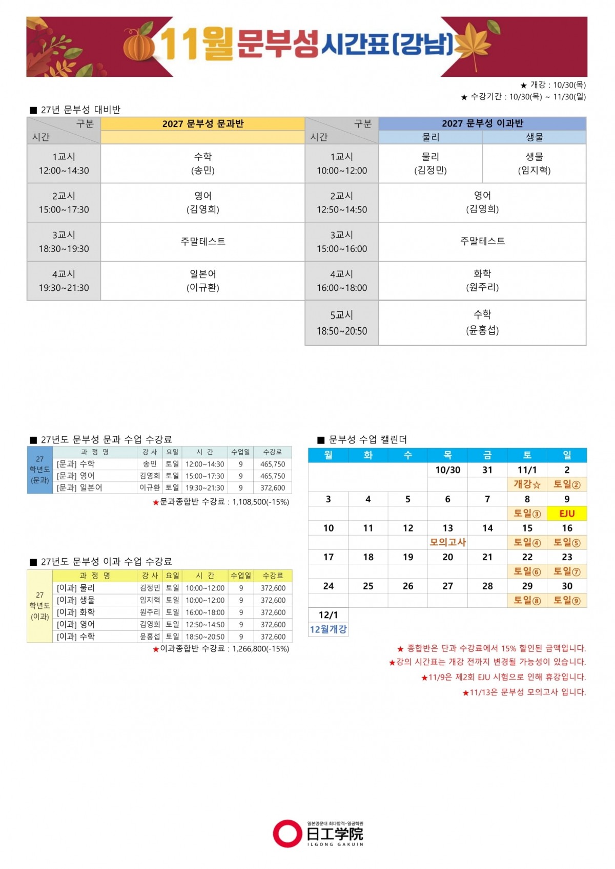 [문부성 27년 대비] 25년 11월 강남캠퍼스 시간표