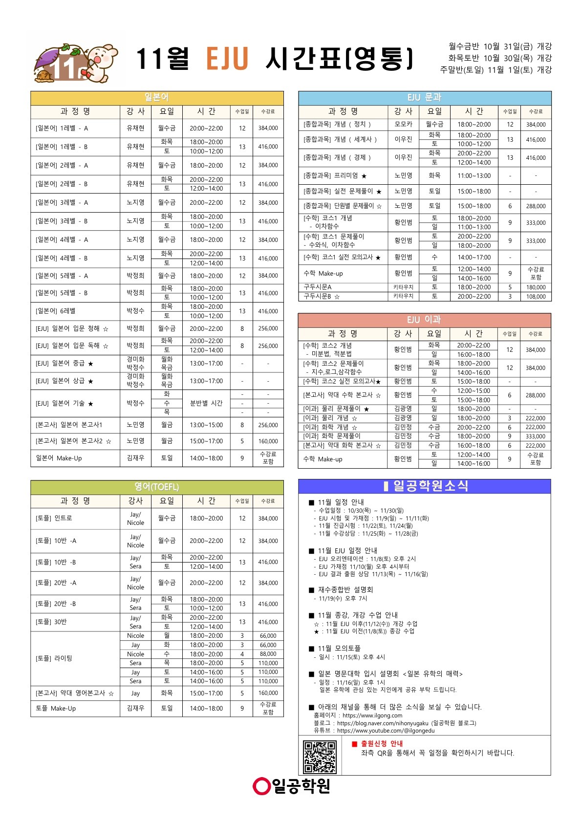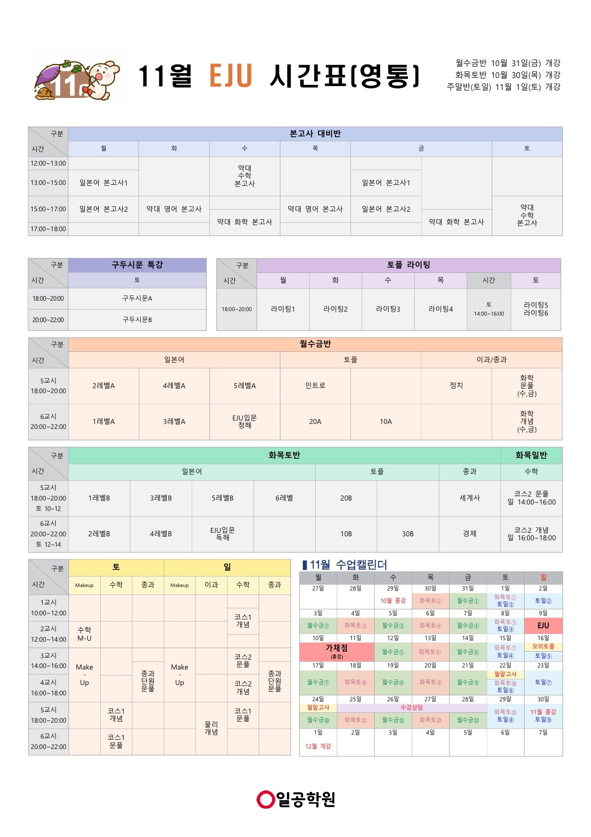 [EJU] 25년 11월 영통캠퍼스 시간표