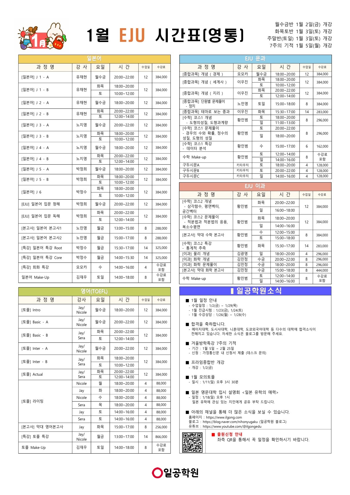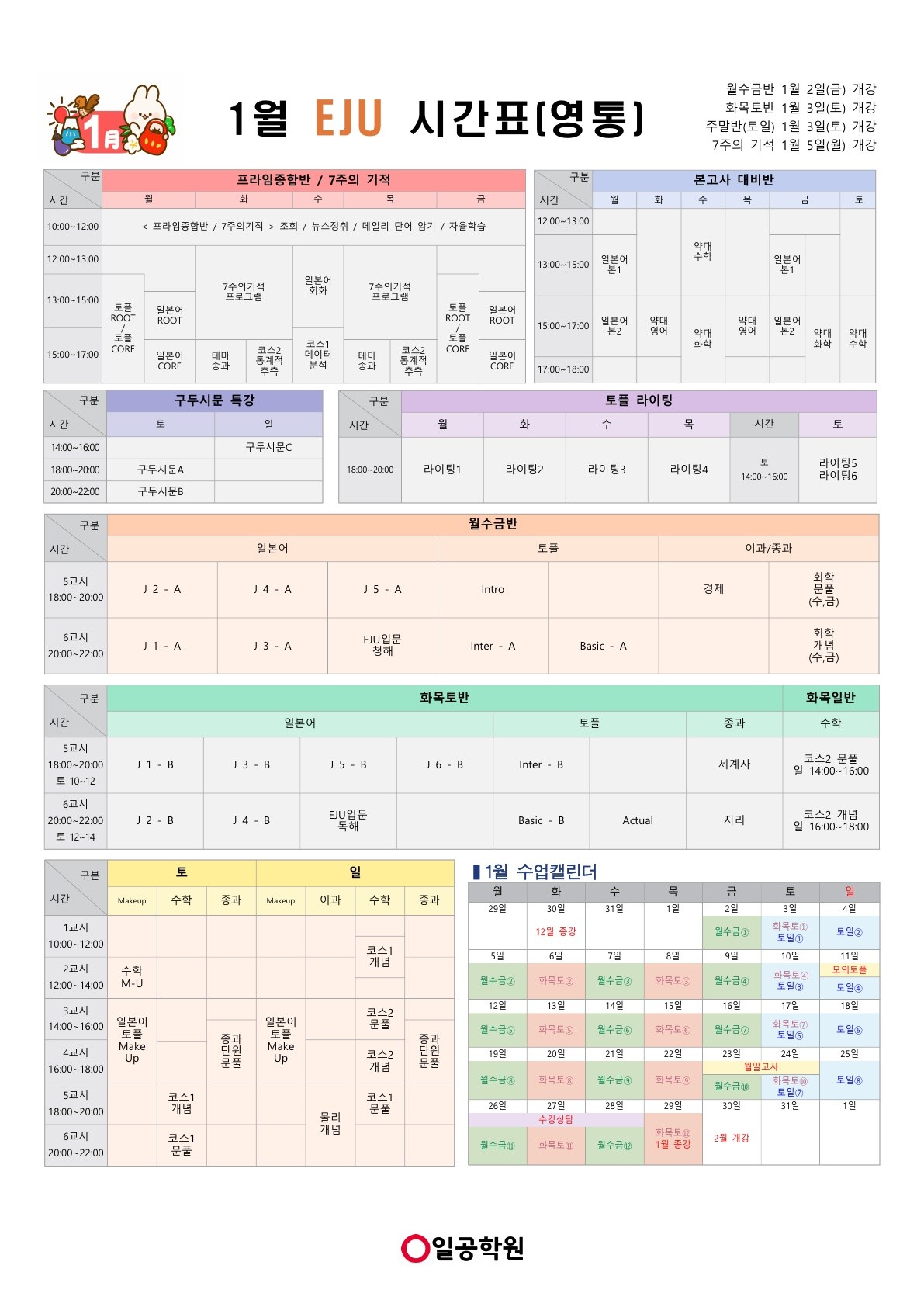 [EJU] 25년 1월 영통캠퍼스 시간표